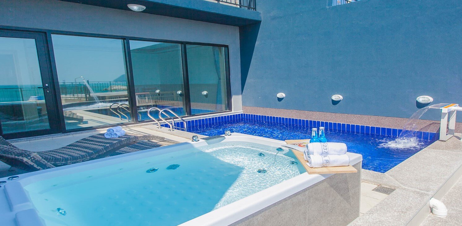 풀빌라와 스파빌라가 있으며 풀빌라 객실에는 프라이빗 하게 즐길 수 있는 개별 수영장이 있습니다. 전 객실 오션뷰를 감상하며 바비큐를 즐길 수 있는 개별 테라스가 있습니다. 카페가 있어 여유를 느끼며 커피를 마실 수 있으며 기본적인 어메니티를 제공합니다.