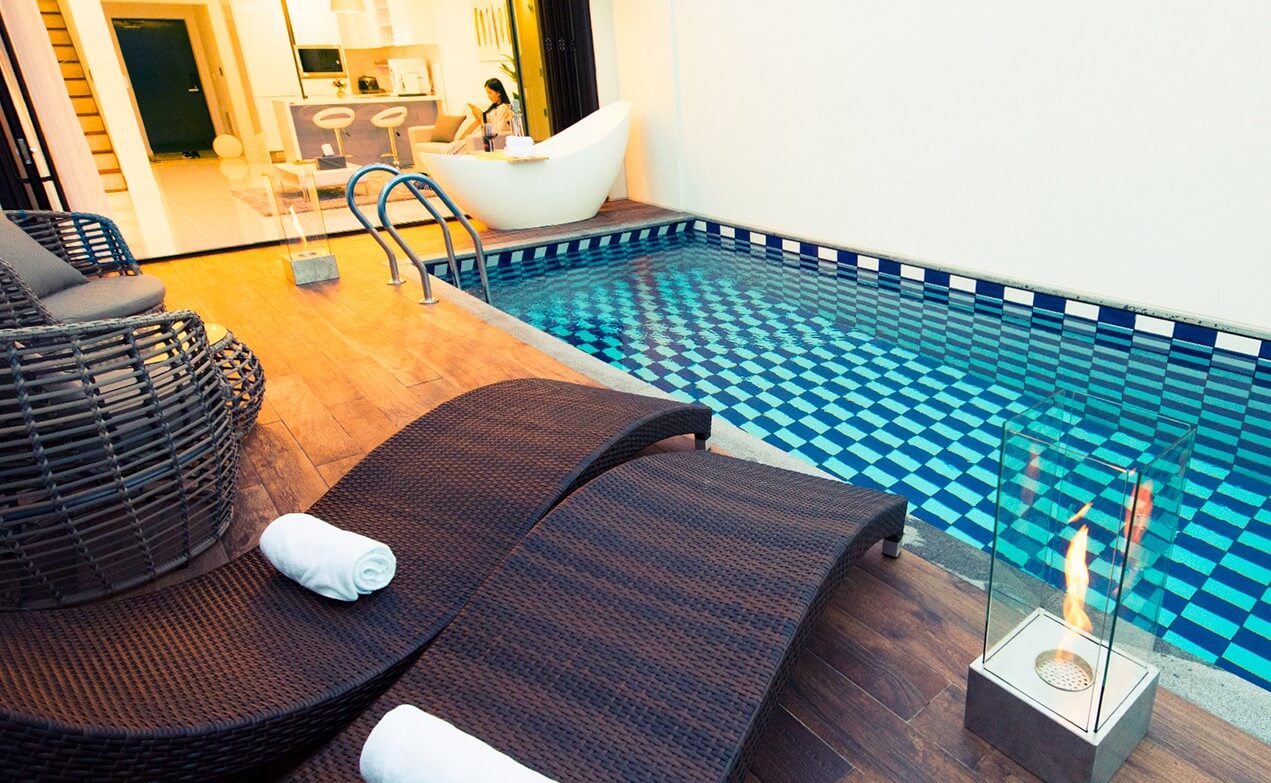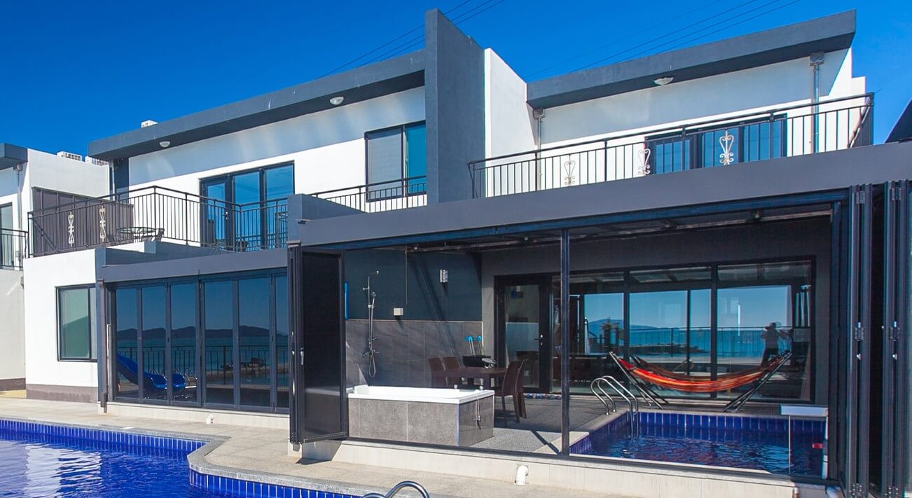 4개의 객실로 이루어져 있으며 최대 6명에서 10명까지 수용 가능합니다. 객실마다 개별바비큐와 개인풀장이 있어 프라이빗하게 즐길 수 있으며 개인풀장은 슬라이딩 도어로 개패가 가능합니다. 스파가 설치되어 힐링되는 시간을 가질 수 있습니다.