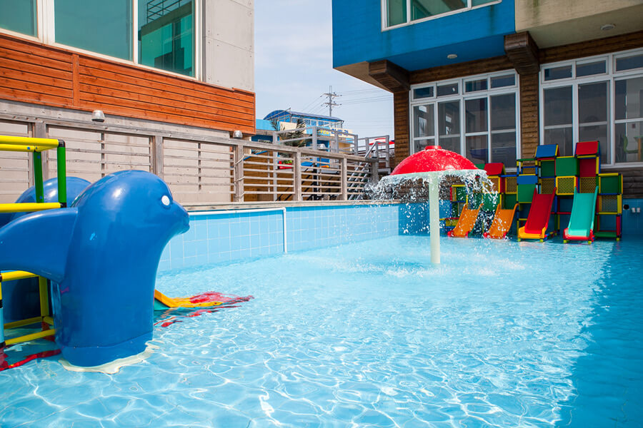 대형 수영장과 물놀이를 더욱더 즐겁게 만들어줄 워터슬라이드가 있으며 미취학 아동들을 위한 키즈 풀장이 있습니다. 풀바에서 휴식을 가질 수 있으며 아이스크림, 칵테일 등을 판매합니다. 뿐만 아니라 당구장, 다트장이 있어 즐길거리가 다양합니다.